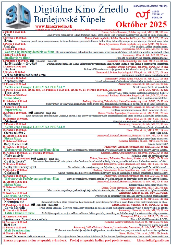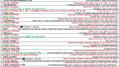 Program kino: OKTÓBER 2025