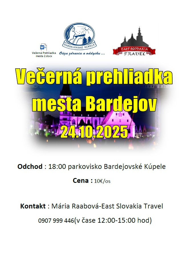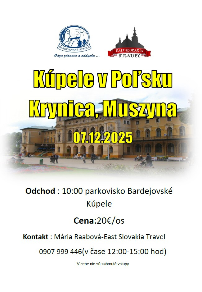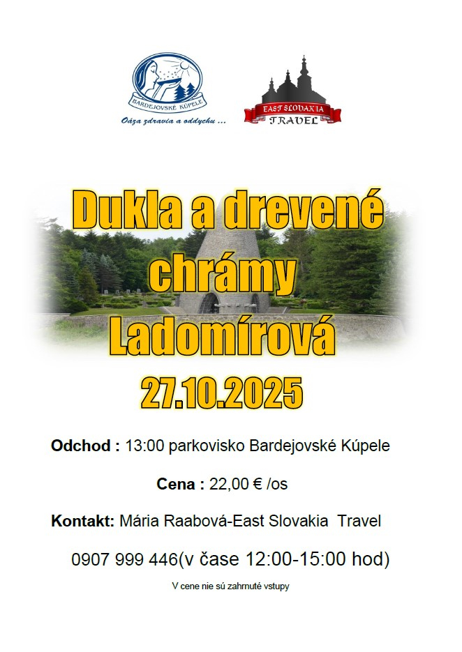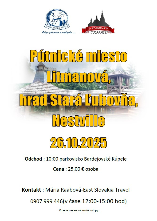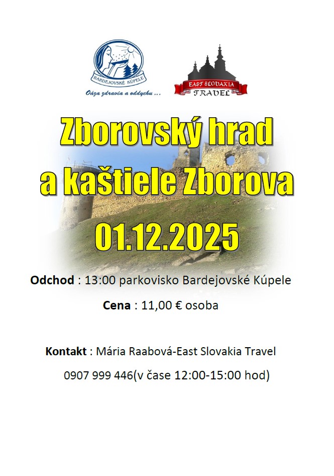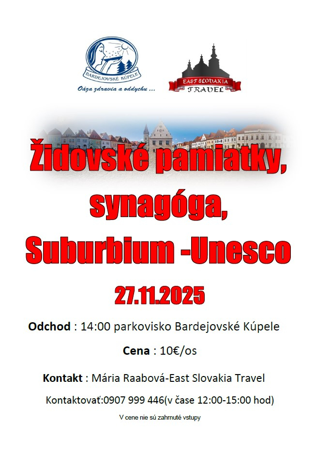 Kontakt na sprievodkyňu: Mária Raabová- East Slovakia Travel, 0907 999 446